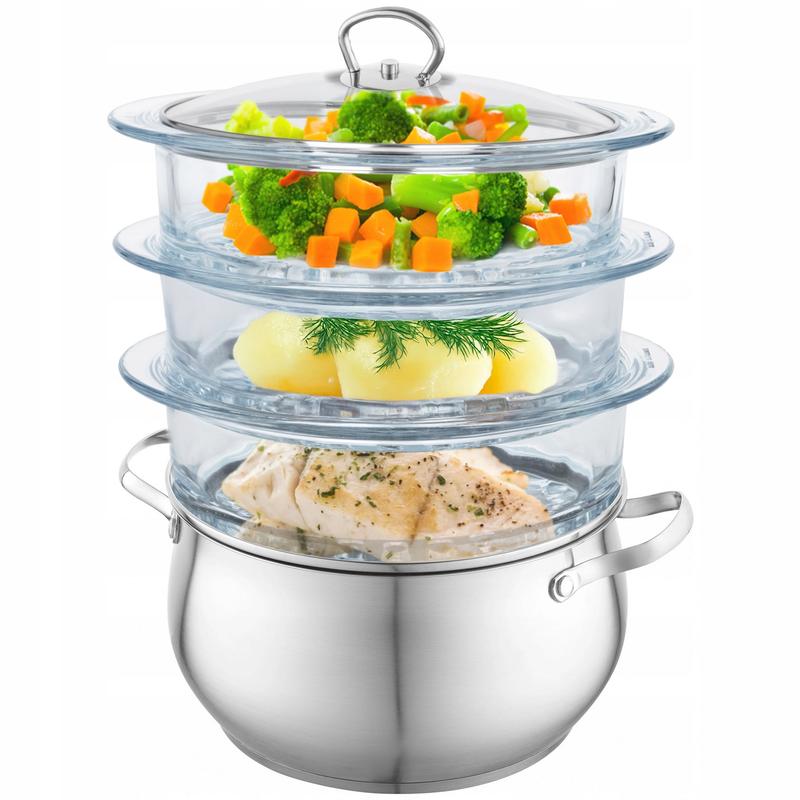 • Konstrukcja: garnki wielopoziomowe umożliwiają równoczesne gotowanie różnych potraw